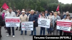 На митинг пришли в основном люди старшего возраста. Выступающие заявили, что не верят, что доживут до пенсии, потребовали прекратить рассмотрение реформы, а инициативу правительства назвали "аферой".