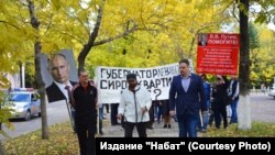 Организовал марш при поддержке городского отделения КПРФ активист Георгий Нацвлишвили. Перед акцией он символически заковал себя в кандалы. Участники марша несли портрет президента Владимира Путина и транспаранты: "Губернатор Левинталь! Сирот квартиры где?", "В.В. Путин, помогите!".