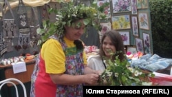 В это время на "Обрядовой поляне" шли свои мастер-классы. Тут можно было, например, вспомнить о старинных народных играх и самим в них поучаствовать.