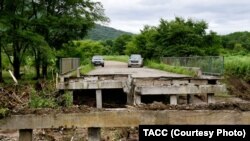 Два моста уже восстановлены, у других дорога прокрадывается в объезд, сами мосты освобождаются от заломов, чтобы избежать дальнейшего разрушения. Кроме того, рабочие с помощью погрузчика и бульдозера засыпают промывы, оставшиеся на дорожном полотне. Глубина таких оврагов на перевалах достигает высоты человеческого роста.