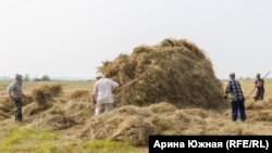 На въезде в деревню кипит работа – чепляровцы косят траву, сушат и собирают в стога.