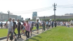 К вечеру часть участников осталась митинговать у мэрии Хабаровска. Часть собравшихся обещает не расходиться с места до утра.
