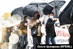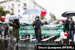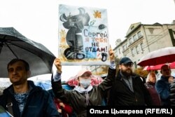– Это же знаете, "г..о" Путина, он просто "сходил" на наш край, – поясняет Виктор. В его руках плакат "Путин наше зло". – У меня просто не хватило места на плакате, а так еще много чего написал бы. Уже весь здравомыслящий народ так считает. Только он во всем виноват: в отравлении Навального, в нашей жизни такой. Вот, посмотрите, Литва, Латвия и Эстония – они живут получше нашего. А все почему? Понимают, что Путин убийца и вор, что не нужно с Россией связываться. А Путина садить нужно, судить, а не Фургала. Вот он убийца и вор.