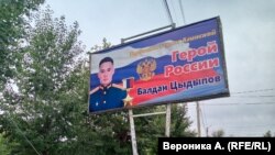 Теперь вдоль главной дороги в поселке висит баннер с портретом Балдана, а в центре собираются установить его бюст.