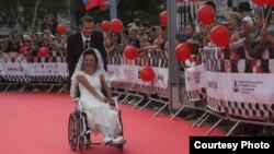 День свадьбы Вики и Андрея в 2018 году пришелся на открытие кинофеста. Ее всегда приглашали на красную дорожку. Обычно коляску по ней катил программный директор "Края света" Алексей Медведев, а в 2018-м это сделал уже муж Андрей. Ее фотографии в свадебном платье разлетелись по соцсетям.