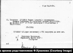 В результате срок наказания сократили до 5 лет. Федор Куканов вышел на свободу к зиме 1941 года. В 1942 году он потерял единственную дочь: девочка погибла при бомбежке в Москве. В 1944 году овдовел: жена погибла в бою под Ригой. Сам летчик в годы войны служил на Севере, был награжден медалями "За победу над Германией" и "За оборону Советского Заполярья". Выйдя на пенсию, жил в Москве, в знаменитом "Доме полярников". Скончался 28 апреля 1964 года.