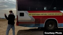 В микроавтобусе висит схема и номер городского маршрута. До мобилизации он возил людей по Улан-Удэ. Сейчас эту машину у хозяина арендовал предприниматель Александр, который несколько лет живёт в Улан-Баторе. Основной его бизнес — отель в монгольской столице. После 21 сентября появилось новое дело — аренда автобусов для вывоза россиян из страны.