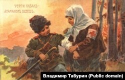 – Серия "Пословицы в лицах", нарисованная для фирмы "Зингер", на выставке не представлена. Однако открытки из этой серии хранятся в фондах Музейного комплекса им. И. Я. Словцова. Они появились у нас еще до "Детского МИРа", – уточняет Лев Боярский. – На выставке представлены военные открытки Владимира Табурина 1914–1916 годов: "Ни с небом, ни с ветром не дружись...", "В тесноте, да не в обиде", а также уже упомянутая серия "Дети-политики" 1917 года.