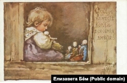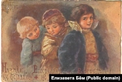 – Елизавета Бём была одним из основоположников русской иллюстрированной открытки, и у нее появилось масса подражателей, – рассказывает Лев Боярский. – На нашей выставке можно увидеть целые серии открыток, выполненных в похожей манере в начале XX века. Это 15 рождественских и пасхальных открыток Елены Лебедевой-Анохиной, 38 открыток из серии "Дети на войне" Александра Лаврова, а также все 10 открыток серии "Дети-политики" Владимира Табурина.